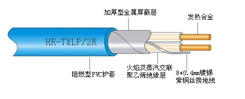 發熱電纜的發熱元件是由銅、鎳合金制成的電阻絲,在一根發熱電纜內,任意同等長度距離內的阻值是相等的。發熱電纜通過密封防水的接線盒與冷線相連,當冷線被加上電壓后,電流在發熱電纜中通過,由于受到電阻的阻礙,電能轉化為熱能并以輻射的形式散發出來,其熱效率高達97%以上