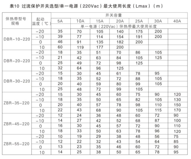 自限溫電伴熱帶如何選擇保險絲及開關(guān)容量